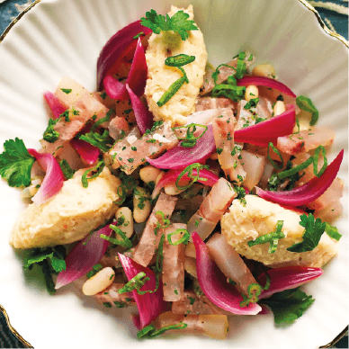 Piatto “veramente” tradizionale delle osterie milanesi: cartilagini di vitello lessate, tagliate a dadini, condite con cipolla, prezzemolo, sottaceti, olio e limone.