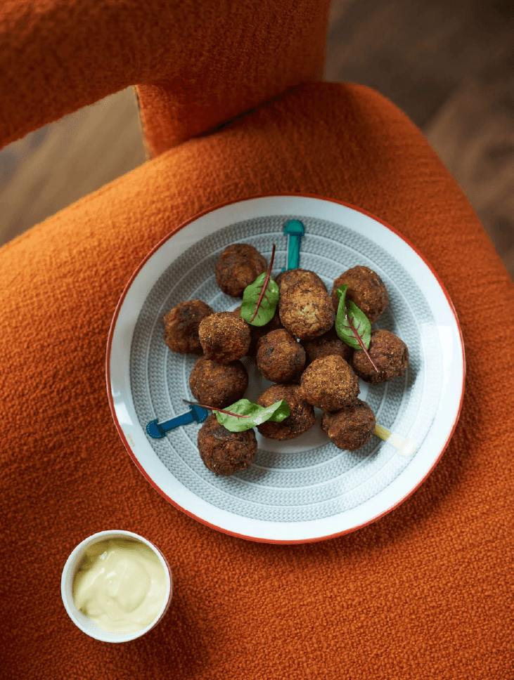 Palline croccanti di pastella di grano saraceno con dentro formaggio fuso.